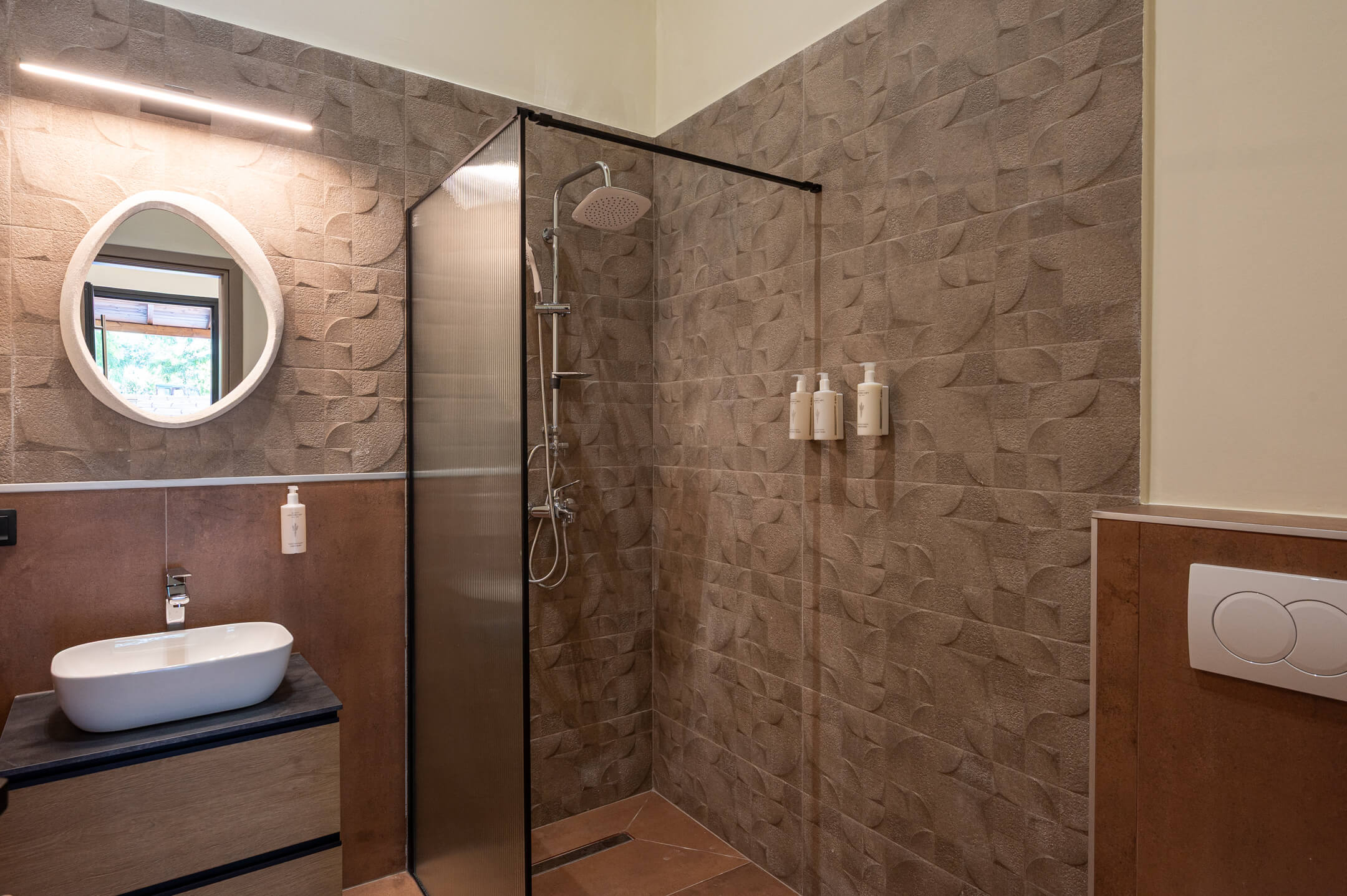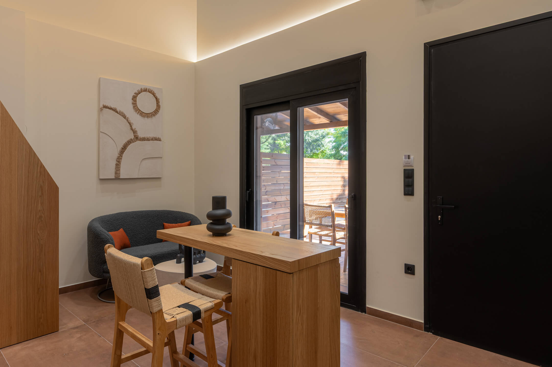Spacious interiors, a smart layout, and all the amenities you need to enjoy your time together — with comfort and privacy. In the garden, you will find the private swimming pool with two sun loungers, perfect for moments of relaxation under the sun or refreshing swims whenever you wish.
